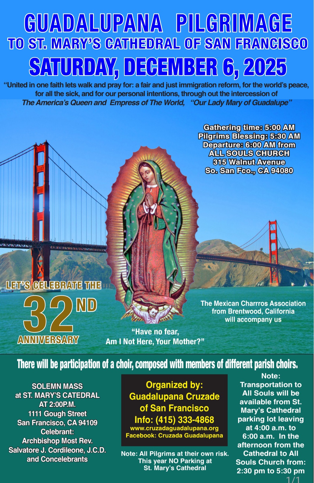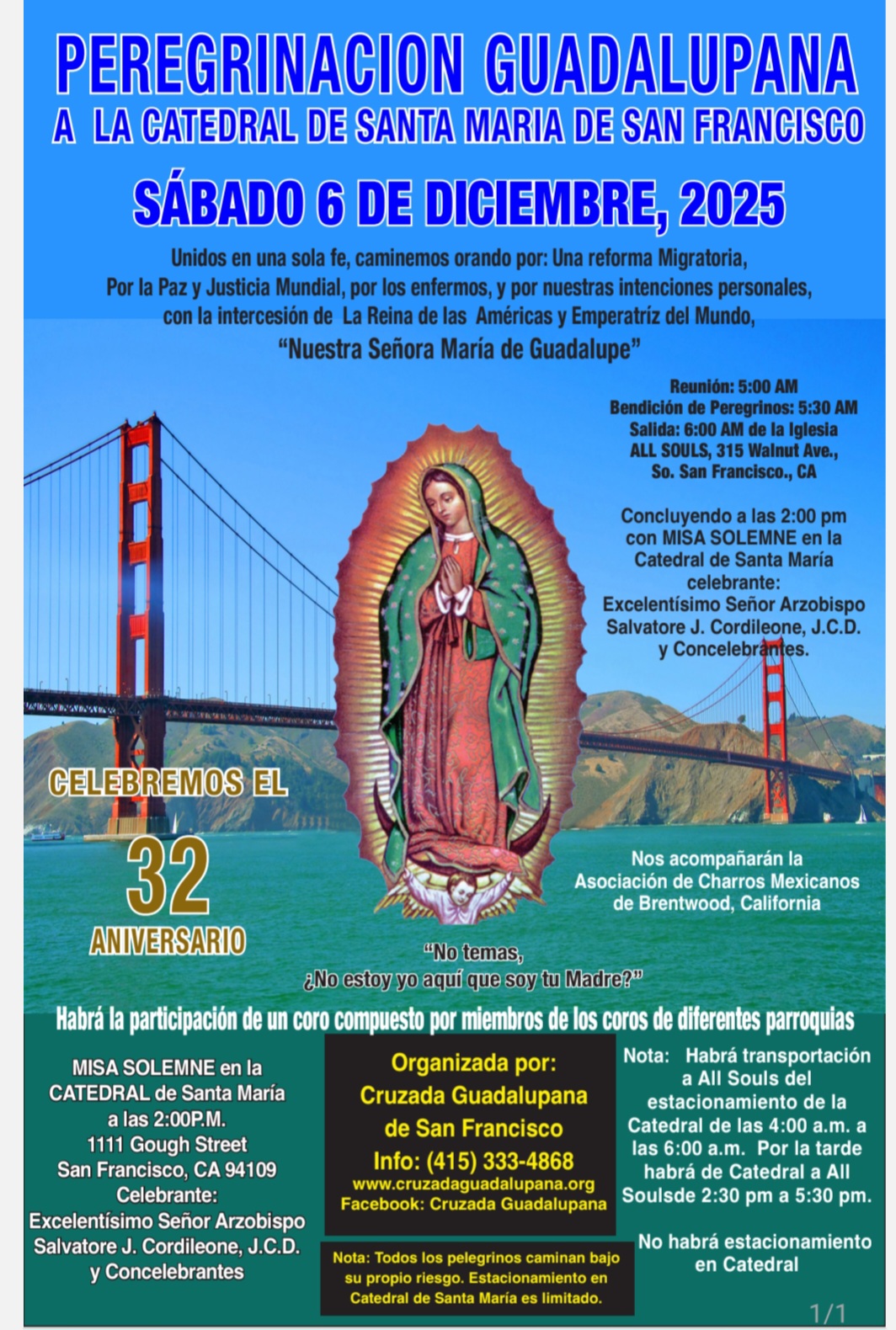 Nuestro Proposito: Unirnos en una sola Fe, Caminar y Orar por: la salud de los enfermos, por una reforma migratoria, por la paz y justicia mundial, por nuestras intenciones personales, con la intercesión de La Reina de América y Emperatríz del Mundo “Nuestra Señora de Guadalupe”